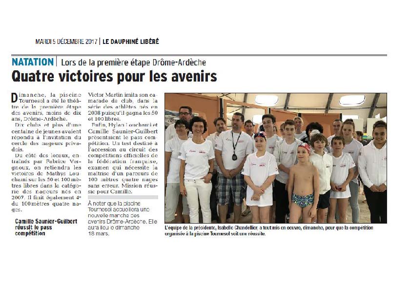 L’article du Dauphiné libéré au sujet de la compétitions Avenirs 1 :