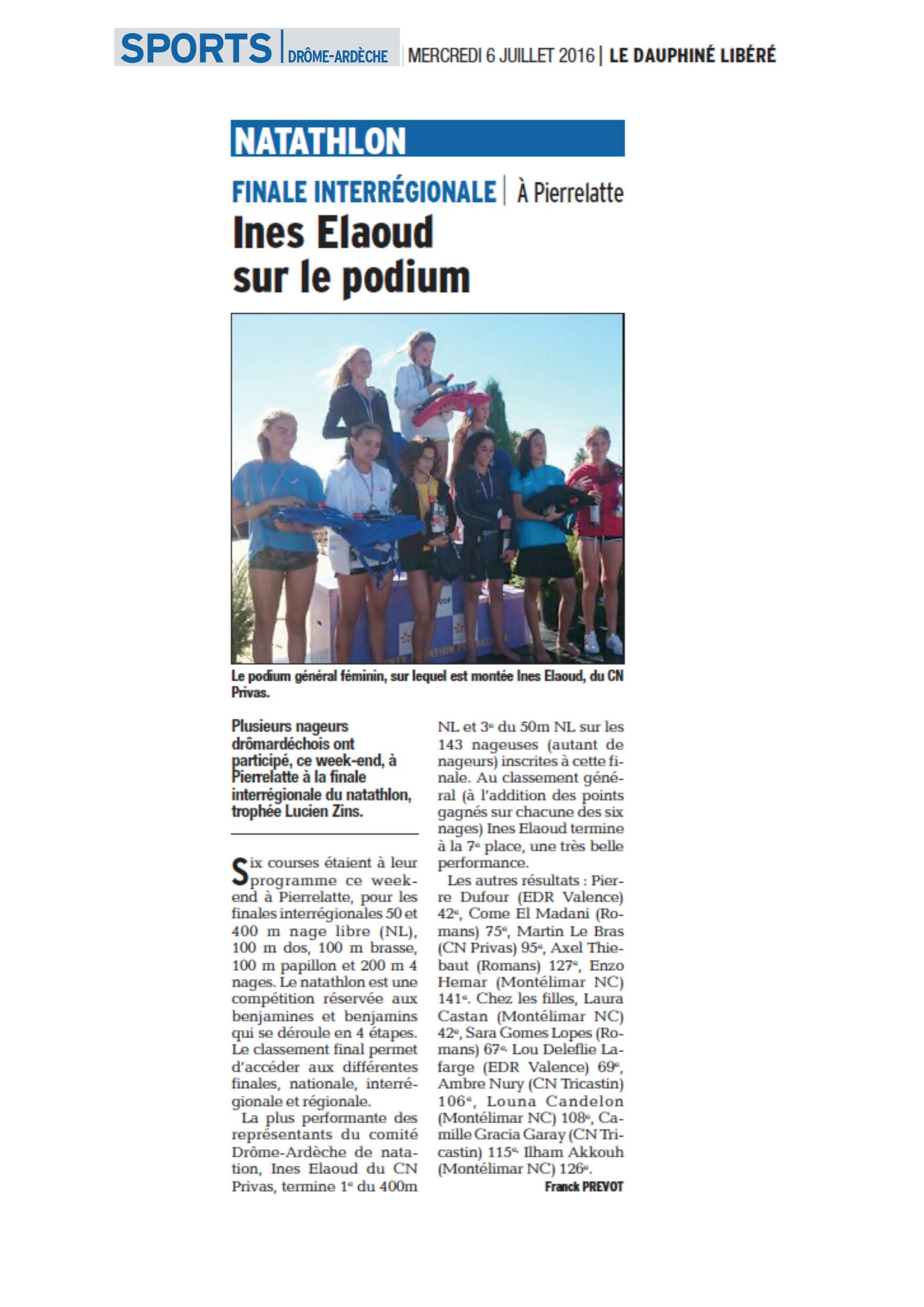 Le Natathlon dans la presse : Inès à l’honneur en pages départementales. Lisez l’article du Dauphiné Libéré.